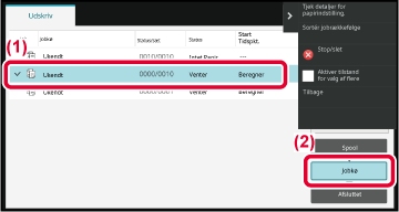 For at skifte fra visning af jobliste til visning af behandlingsstatus skal du trykke