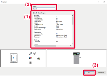 Erläuterungen der Einstellungen können Sie in der Druckertreiberhilfe finden.Wenn Sie dieses Gerät als geteilten Drucker verwenden und im Druckertreiber des geteilten