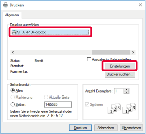 Öffnen Sie das Druckertreiber-Einstellungsfenster.