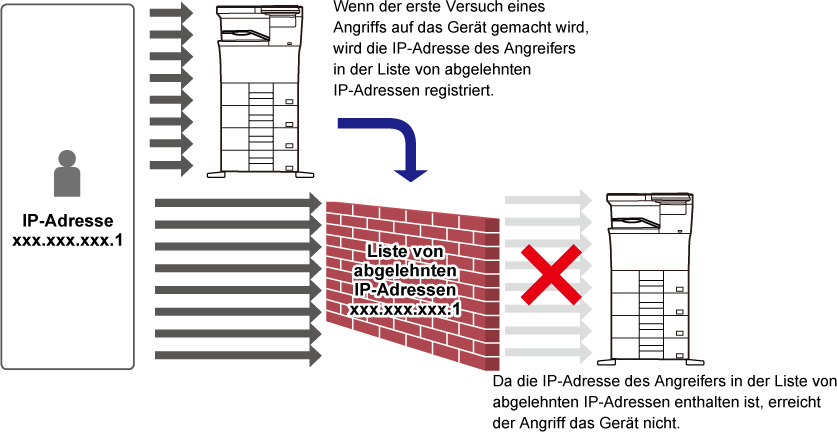 Wenn Sie die Dokumentenablage verwenden möchten, wählen Sie [Beibehaltung erzwingen] oder [Aufträge deaktiv. außer Druck halten]. Wenn Sie [Aufträge deaktiv. außer Druck halten] festlegen, werden Druckaufträge, für die im Druckertreiber keine Dokumentenablage festgelegt ist, abgebrochen. |