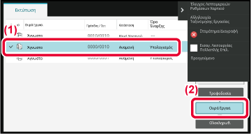 Όταν πατάτε μια κατάσταση εργασίας, εμφανίζεται η οθόνη κατάστασης εργασίας. Πατήστε