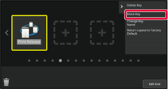 The settings are saved in the machine and applied.This section explains how to move a shortcut key in the home screen.