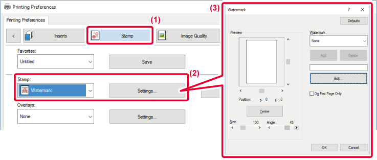 - Select [Watermark] from "Stamp" and click the [Settings] button.