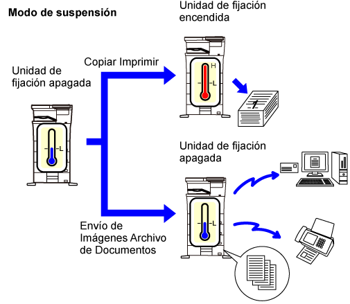 Este modo reduce la temperatura de la unidad de fijación y hace que la máquina espere