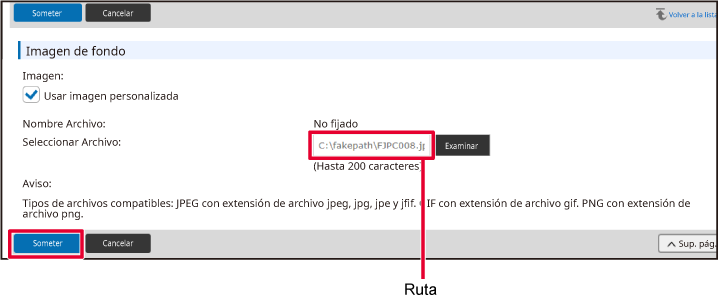 Seleccione "Usar imagen personalizada" y haga clic en el botón [Examinar] para seleccionar la imagen que desee.