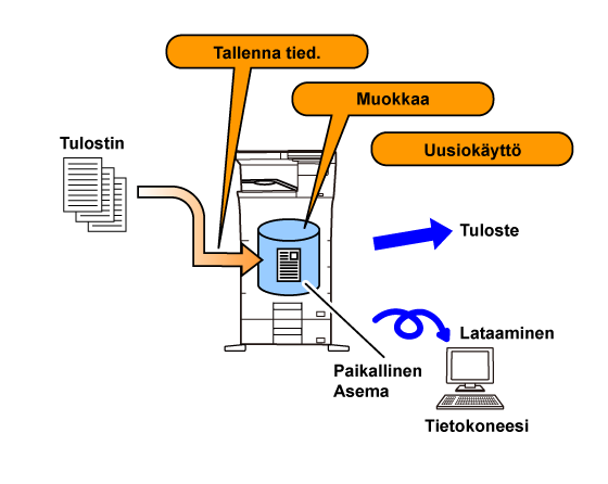 Toiminto tallentaa tulostustiedot tiedostona laitteen paikalliselle asemalle tai ulkoiseen