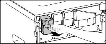 La cartouche de toner vide est éjectée vers l'avant pour pouvoir être retirée.