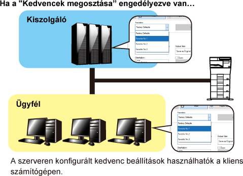 A beállítások leírását megtalálja a nyomtató-illesztőprogram Súgójában.Amikor a gépet megosztott nyomtatóként használja, és a "Kedvenc" funkció be van állítva