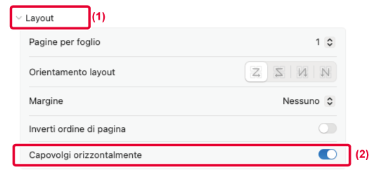 Questa funzione consente di ruotare l'immagine di 180 gradi per consentire una stampa