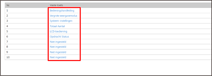 De instellingen worden opgeslagen in het apparaat en worden toegepast.U kunt de vaste toetsen wijzigen. De vaste toetsen kunnen worden gewijzigd via de