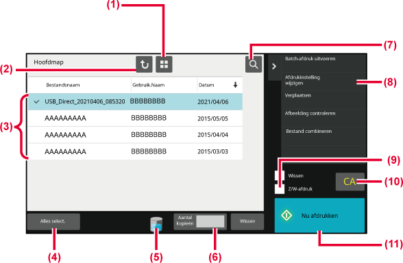 Het bestandsselectiescherm kan worden weergegeven in de indeling 'Lijst' of 'Miniatuur'