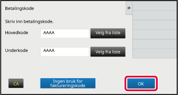 . Dette gjør at du slipper å angi betalingskoder ved hver modusovergang.Hvis du vil endre den angitte betalingskoden til en ny, trykker du på [Bytt faktureringskode.]
