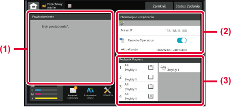 Zostanie wyświetlony stan urządzenia, taki jak stan połączenia sieciowego i wersja