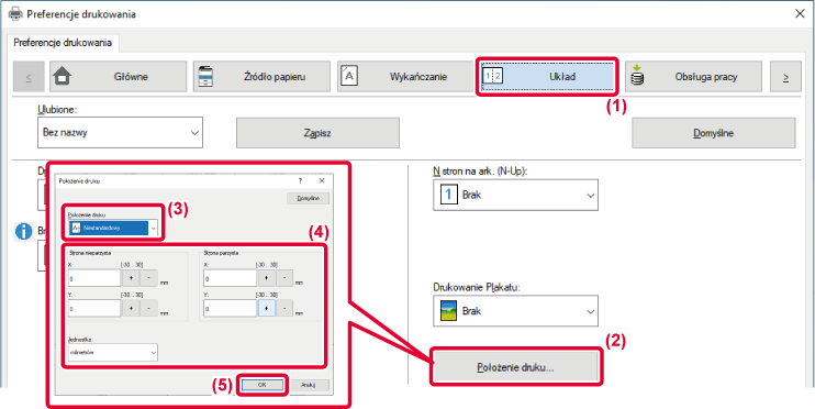 Funkcja ta umożliwia ustawienie różnych pozycji druku (marginesy) oddzielnie dla stron