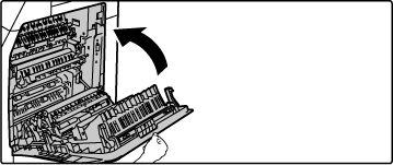 A unidade de fusão está quente. Tome cuidado para não se queimar quando operar as alavancas de ajustamento da pressão da unidade de fusão.Precaução