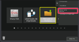 As definições serão guardadas na máquina e aplicadas.Esta secção explica como mover uma tecla de atalho no ecrã inicial.
