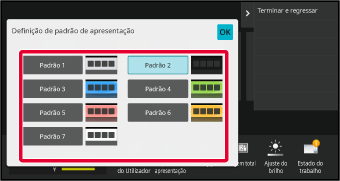 A máquina contém vários padrões de cor predefinidos. É possível alterar o padrão de