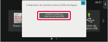 Quando aparecer A ecrã de seleção da ação, toque em [Imprimir a partir do disp de mem ext (USB)].