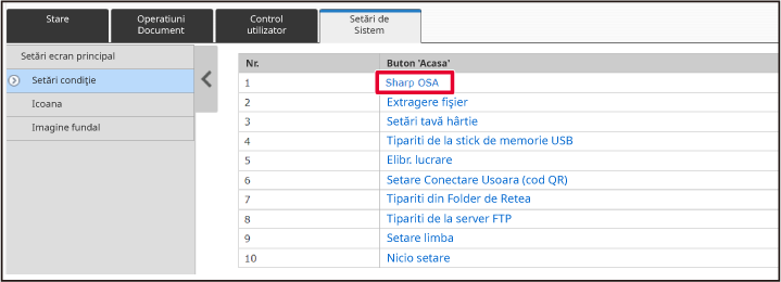 Atingeți [Setări sistem] → [Setări ecran principal] și apoi atingeți tasta [Poziția butonului de pornire].