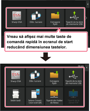 În ecranul principal, puteţi schimba numărul de taste de comenzi rapide afişate şi