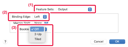 - Selectați formatul de ieşire specificat şi marginea de legare.