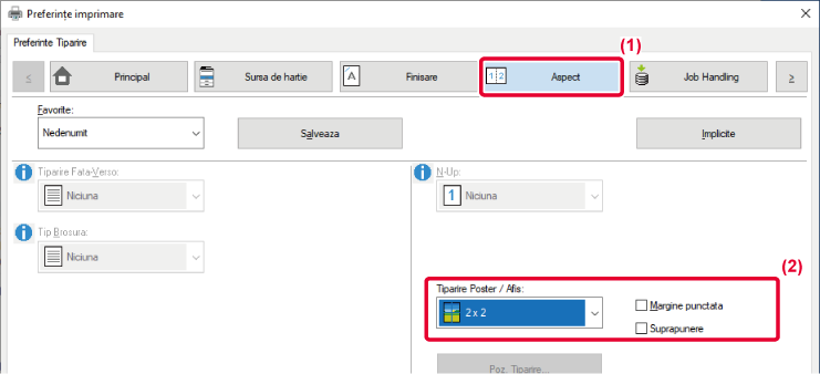 - Selectați numărul de file care trebuie utilizate în "Tiparire Poster / Afis".