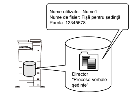 Un director particularizat creat în prealabil poate fi selectat ca "Fişierul meu" sau puteţi crea un director nou ca "Fişierul meu". Când "Fişierul meu" a fost configurat şi este utilizată autentificarea utilizatorilor, "Fişierul meu" va fi selectat întotdeauna ca destinaţie pentru [Fişier] şi [Stocare fişier]. |