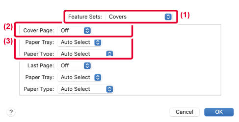 - В macOS 12 и более ранних версиях выберите [Printer Features], а затем — [Covers].
