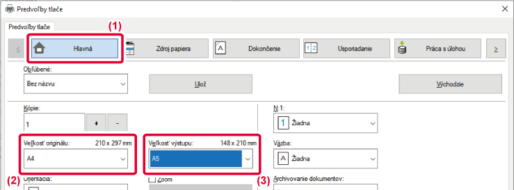 - V [Veľkosť výstupu] vyberte skutočnú veľkosť papiera, ktorú budete používať na tlač