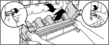 Öppna samtidigt som du trycker på de konvexa delarna på båda sidor.