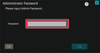Administratörens lösenordsskärm visas. Ange lösenordet.