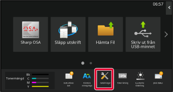 När en USB-enhet är ansluten till maskinen visas popup-fönstret. Tryck på knappen [OK].Tryck på [Inställningar] på startskärmen.