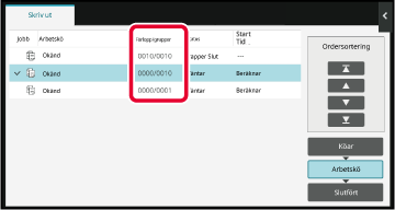 Tryck på det jobb som ska prioriteras och tryck sedan på [Sortera uppdragsordning] på åtgärdspanelen.