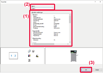 Förklaringar av inställningarna finns i skrivardrivrutinens hjälpfunktion.När du använder den här maskinen som en delad skrivare och "Favorit" är inställt i