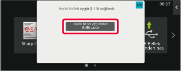[UBS Bellekten yazdırılacak dosya seç] öğesine dokunduğunuzda, USB bellek aygıtını makineye bağlayın.