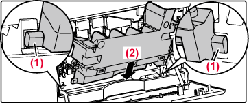 Press the release buttons on the sides of the toner collection container, push the toner collection container down until the toner collection container stops, and pull out slowly.