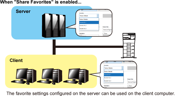 For explanations of the settings, see printer driver Help.When using this machine as a shared printer, if "Favorite" is set in the printer driver
