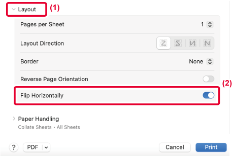 3. In macOS 12 and earlier, select the [Flip Horizontally] checkbox ().