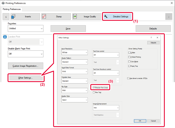 • To print all line data in the minimum line width, click the [Minimum Line Width] checkbox.