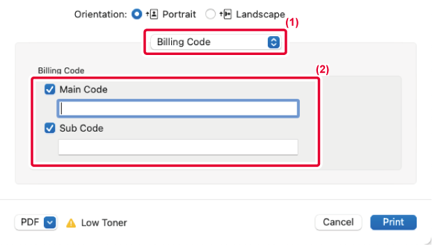 Pomocí tiskárny můžete zadat kód účtování tiskárny.
