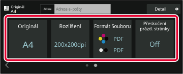 Zadejte velikost skenování originálu, expozici, formát souboru a další položky.