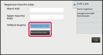 Veřejně pro vše: Zaregistruje kód účtování jako veřejný kód pro všechny uživatele daného přístroje.