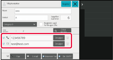 Tryk på [Slet] i handlingspanelet for at slette en "Kontaktpers." eller "Gruppenummer".Redigering af en "Kontaktpers." eller "Gruppenummer"