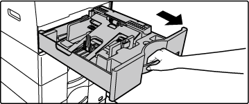 Legen Sie keine schweren Gegenstände auf die Kassette und drücken Sie die Kassette nicht nach unten.Ziehen Sie das Papierfach heraus.