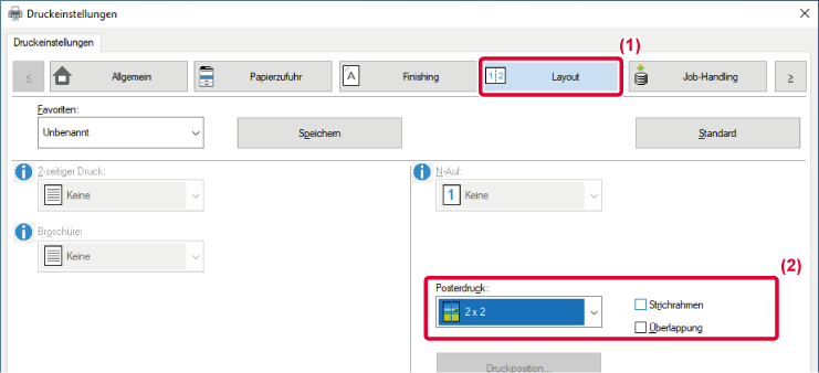 und auf mehreren Papierblättern gedruckt werden (2 Blatt (1 x 2),