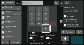 • Die [R]-Taste kann in eine in einer Kurzwahltaste gespeicherte Faxnummer eingefügt werden.