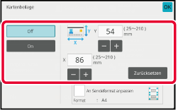Berühren Sie die Taste [On], um das erforderliche Originalformat festzulegen.