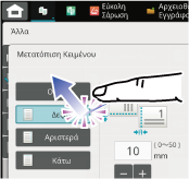 Παρατεταμένο άγγιγμα Αγγίξτε τον πίνακα με το δάχτυλό σας και κρατήστε το για λίγο. Κρατήστε το πατημένο (παρατεταμένο άγγιγμα) στον πίνακα λειτουργίας ή στους χαρακτήρες στο πλαίσιο κειμένου για την εμφάνιση των χαρακτήρων σε συννεφάκι. |
