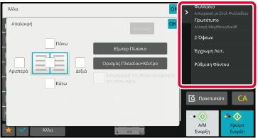 Στον πίνακα λειτουργίας, μπορείτε να ρυθμίσετε λειτουργίες