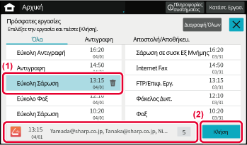 των πρόσφατα χρησιμοποιημένων εργασιών. Πατήστε ένα στοιχείο στη